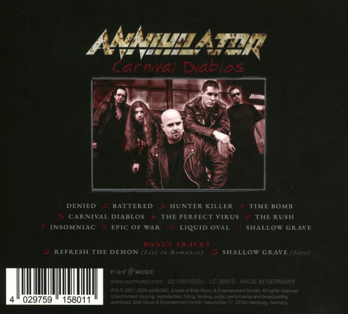 Na płycie znalazły się wyróżniające się utwory, takie jak „Denied”, „Battered” oraz „The Perfect Virus”, które doskonale oddają energię i agresję Annihilator. Carnival Diablos to solidna dawka nowoczesnego thrash metalu – intensywna, dynamiczna i pełna gitarowej wirtuozerii.