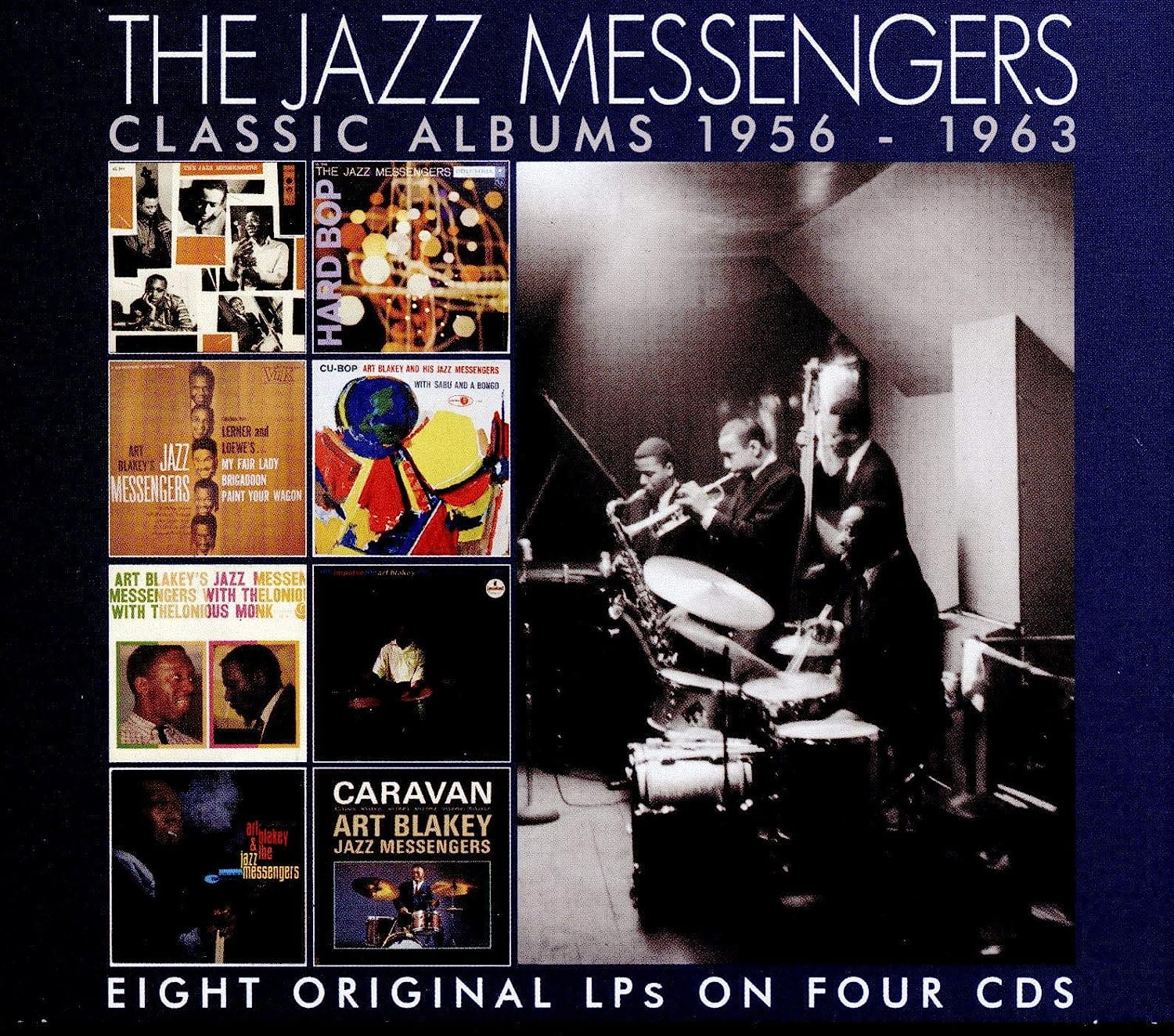Geneza Jazz Messengers sięga roku 1954 lub 1955, kiedy to pojawiły się pierwsze nagrania przypisywane zespołowi. Jazz Messengers powstali jako kolektyw, nominalnie prowadzony przez Horace'a Silvera lub Arta Blakeya w różnych terminach studyjnych. Blakey przypisuje Silverowi ożywienie nazwy Messengers. Inni oryginalni członkowie to Kenny Dorham, Hank Mobley i Doug Watkins. Pierwszymi nagraniami, na których oficjalnie użyto nazwy Jazz Messengers, była para koncertów nagranych w Café Bohemia w 1955 roku. Dwa wcześniejsze nagrania z sesji na przełomie 54 i 55 roku - wydane na 10-calowych LP firmy Blue Note jako Horace Silver Quintet, Vols. 1 i 2 - zostały następnie wznowione jako 12" LP zatytułowane Horace Silver and the Jazz Messengers. W 1956 roku Dorham opuścił zespół, by działać na własną rękę, a jego miejsce zajął Donald Byrd. W tej wersji wydano The Jazz Messengers (Columbia, 1956), ale jeszcze w tym samym roku oryginalna grupa poszła własnymi drogami, ale Blakey zachował nazwę Messengers dla swoich przyszłych zespołów. Ta wspaniała kolekcja zawiera osiem najlepszych płyt The Jazz Messengers z tej epoki, na których obok manimana Arta Blakey'a występują najlepsi i najbardziej znani muzycy tamtych czasów.