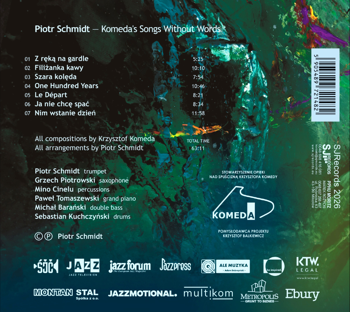 „Piosenki Komedy bez słów” to album, w którym Piotr Schmidt sięga po jedne z najbardziej rozpoznawalnych melodii Krzysztof Komeda, nadając im nowe życie w formie instrumentalnych narracji. To muzyka zakorzeniona w filmowej poetyce lat 60., ale opowiedziana współczesnym językiem jazzu — pełnym napięcia, subtelności i otwartej improwizacji.